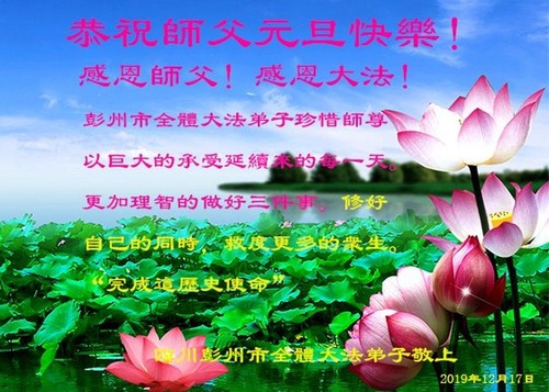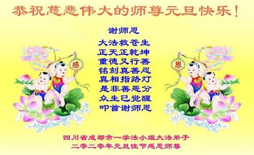 Практикующие Фалунь Дафа из города Чэнду желают уважаемому Учителю Ли Хунчжи счастливого Нового года (19 поздравлений)