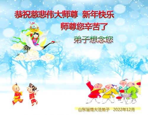 Практикующие Фалунь Дафа из провинции Шаньдун желают уважаемому Учителю Ли Хунчжи счастливого Нового года (22 поздравлений)