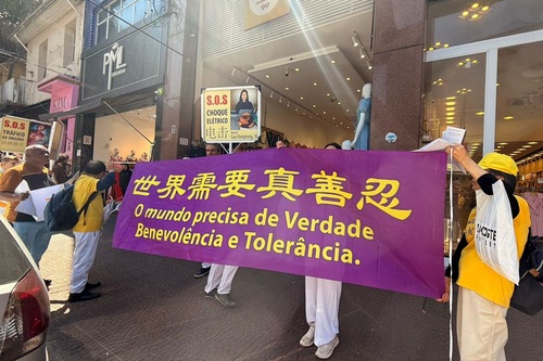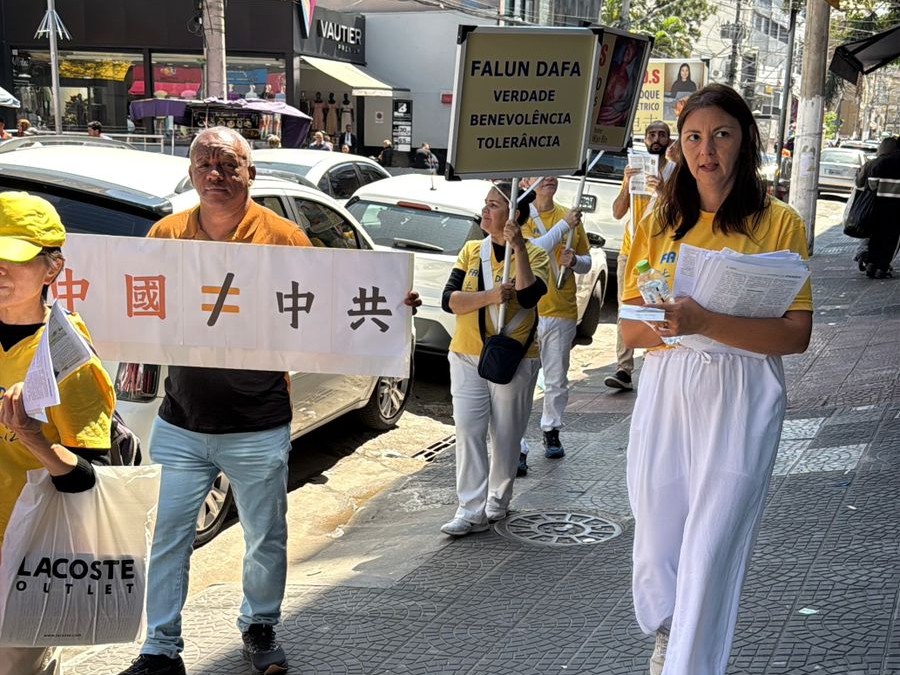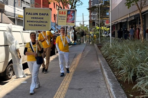 (Minghui.org) 27 сентября 2025 года последователи Фалунь Дафа провели шествие в районе Брас в городе Сан-Паулу, чтобы познакомить общественность с духовной практикой самосовершенствования и рассказать о её преследовании компартией Китая.