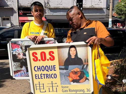 К концу мероприятия в окно машины внезапно заглянула жительница Бразилии и возбуждённо воскликнула: «Как такое могло случиться? Преследование Фалуньгун, извлечение органов? Это так жестоко!» Она спросила, чем может помочь. Практикующая дала ей буклет на португальском языке и объяснила, почему КПК преследует Фалуньгун. Она предложила ей подписать онлайн-петицию, чтобы помочь остановить преследование.