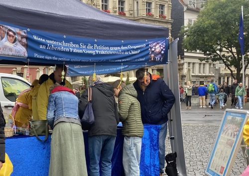 (Minghui.org) 4 октября 2025 года практикующие Фалунь Дафа из разных районов Германии провели митинги в двух местах в центре Эрфурта, города, расположенного на севере Германии. Они рассказывали людям о Фалунь Дафа и о продолжающемся в Китае преследовании, развязанном коммунистическими властями. Мероприятие привлекло внимание местных жителей, и многие из них поддержали практикующих, подписав петиции, призывающие остановить преследование.