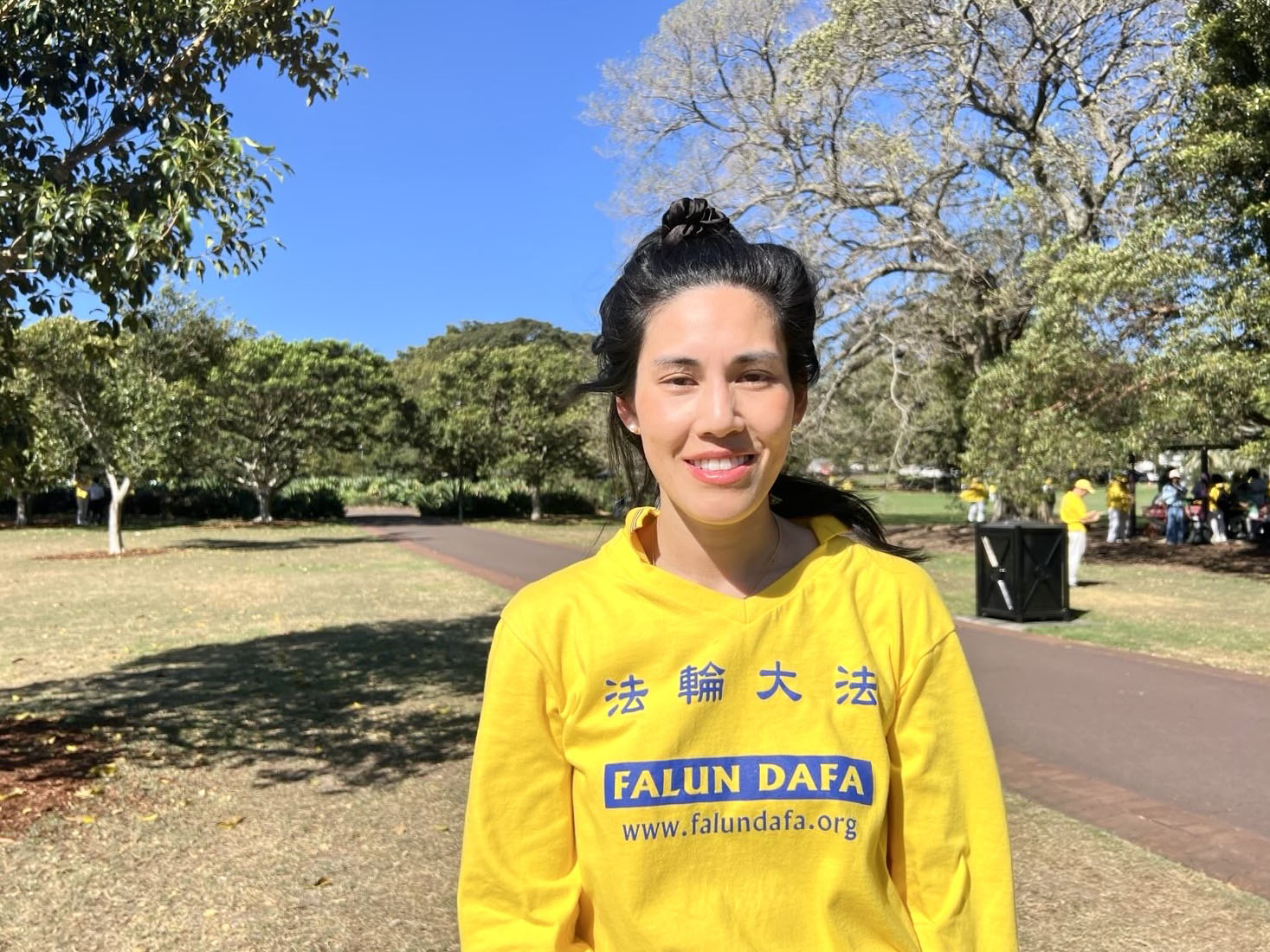 Джозефин Помпа из города Виктории сказала, что практика Фалунь Дафа помогла ей стать оптимисткой