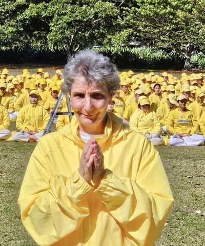 Карен Чэн, практикующая из Западной Австралии, сказала, что участие в мероприятии 11 октября было для неё чем-то особенным. «Я очень благодарна за то, что смогла принять участие в формировании эмблемы Фалунь. Мне не было жарко, особенно когда дул ветерок. Думаю, что Учитель помогал мне».