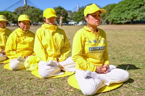 Практикующие, участвовавшие в создании эмблемы, также продемонстрировали пять упражнений Фалунь Дафа под мелодичную музыку. Местные жители и туристы, видевшие это событие, были поражены его масштабом. Некоторые отметили, что почувствовали спокойную энергию.