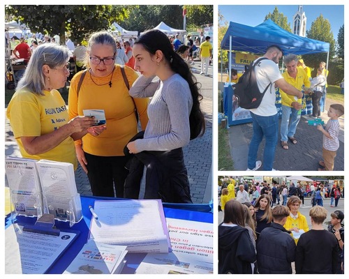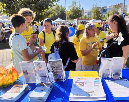 (Minghui.org) Практикующие Фалунь Дафа из пяти стран – Румынии, Венгрии, Словакии, Молдовы и Франции – приняли участие в параде, который состоялся в день открытия 30-го Фестиваля каштанов в городе Бая-Маре и в течение трёх дней знакомили людей с Фалунь Дафа.