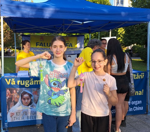 Она также передала слова поддержки практикующим в Китае: «Дорогие практикующие, не теряйте надежду и веру!» Сестра Клаудии, Фелисия, тоже присоединилась к ней, поддержав практикующих и юных учеников Дафа, подвергшихся преследованию в Китае, призывая их не сдаваться и верить в себя.