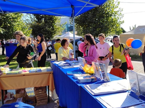 Информационная палатка практикующих возле памятника Юлиу Маниу