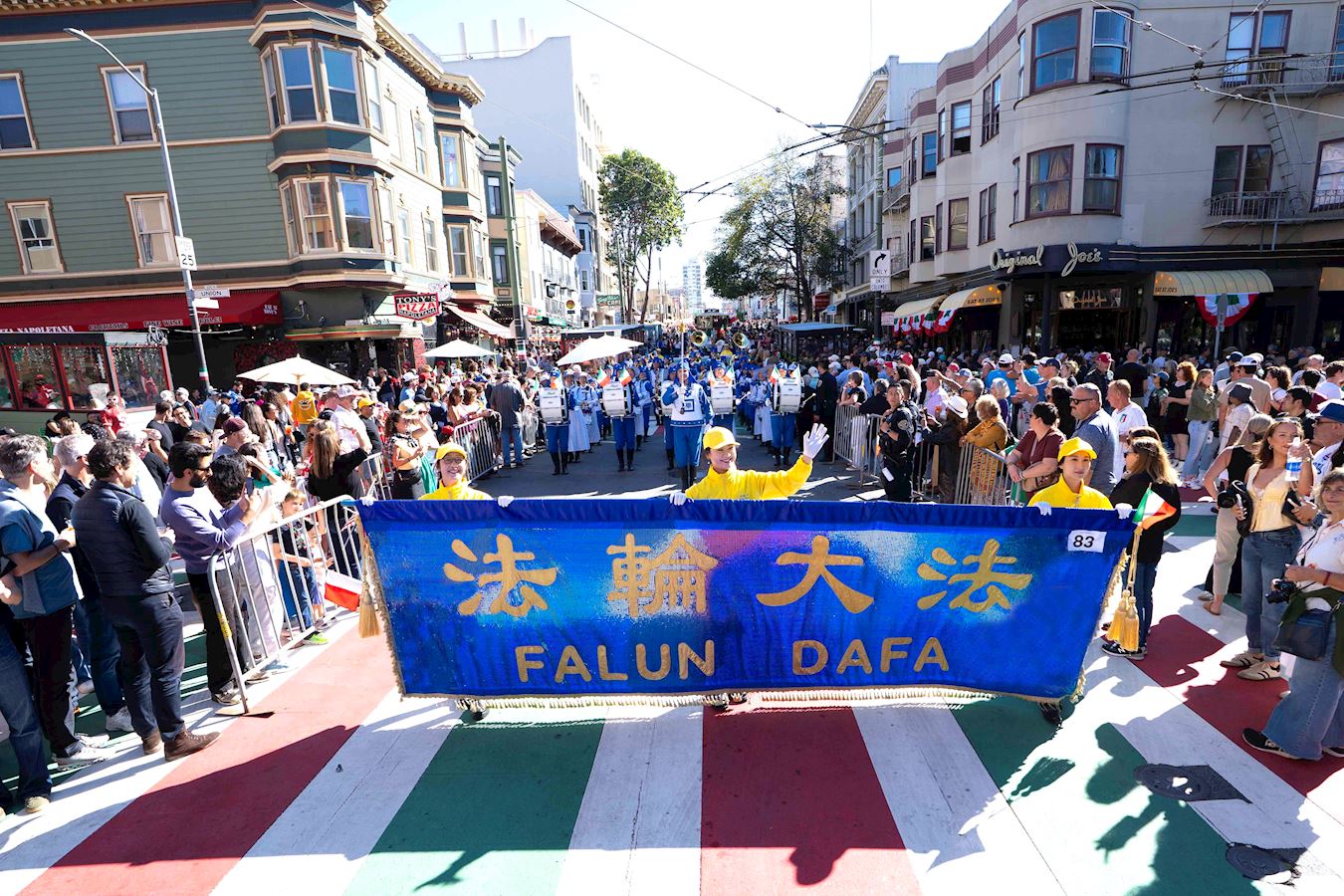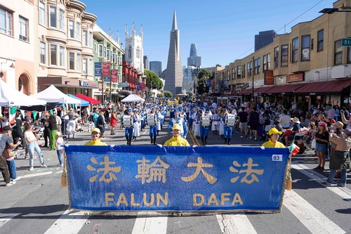 (Minghui.org) 12 октября 2025 года духовой оркестр Тянь Го, состоящий из практикующих Фалунь Дафа (Фалуньгун), принял участие в параде итальянского наследия в Сан-Франциско.