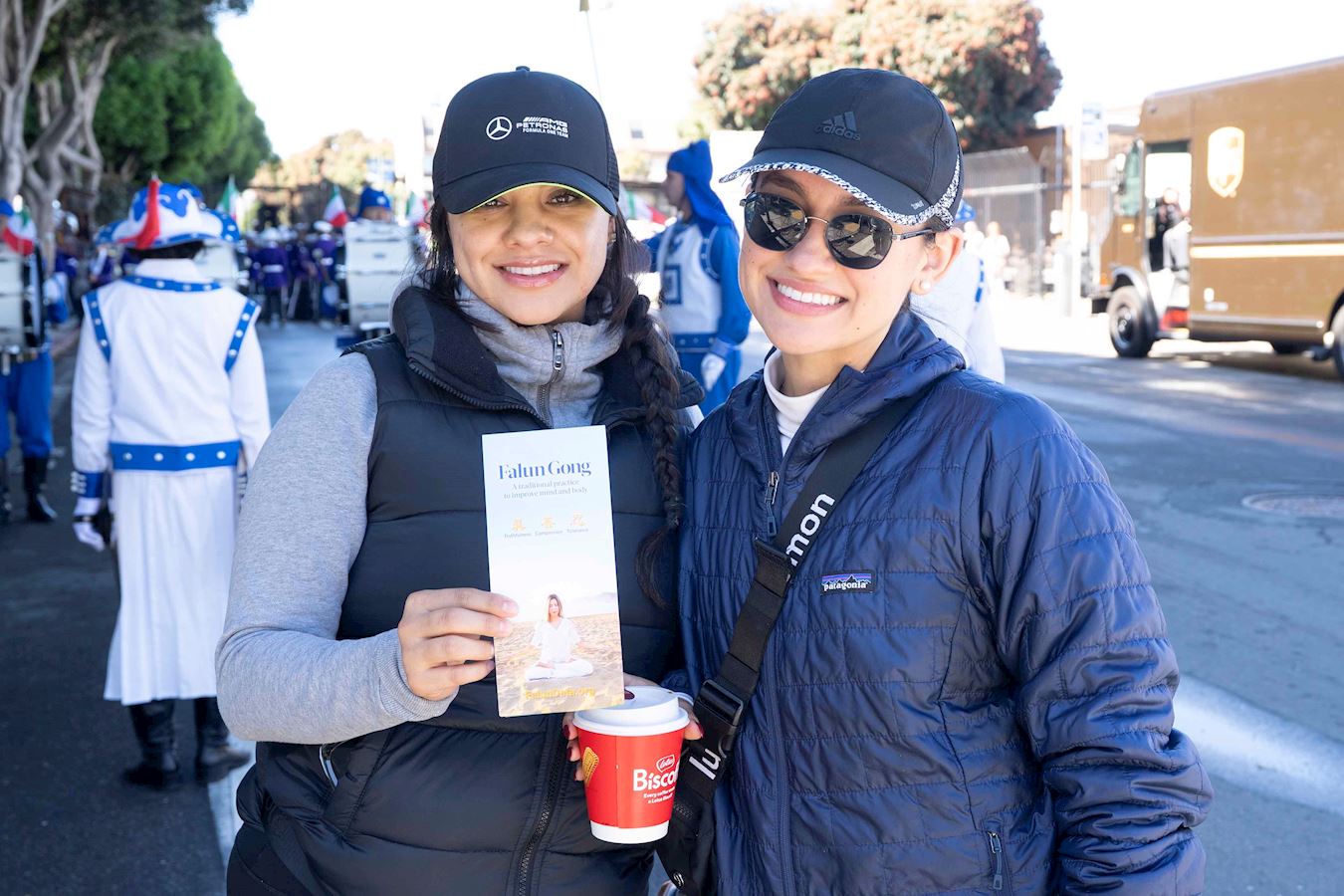 Перед парадом Джей Дэвид, продавец, работающий в технологической компании в Сан-Франциско, заметил участников духового оркестра Тянь Го в синей форме и сфотографировал их камерой телефона. Он сказал: «Я в синем, и они в синем. Выглядит круто, поэтому я и сфотографировал их».