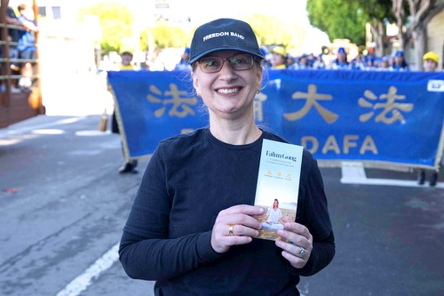 Увидев информационный буклет Фалуньгун, она воскликнула: «Это медитация! Истина, Доброта, Терпение – мне это очень нравится. Я из Сакраменто и хочу играть в вашем оркестре. Есть ли в Сакраменто практикующие Фалуньгун?»