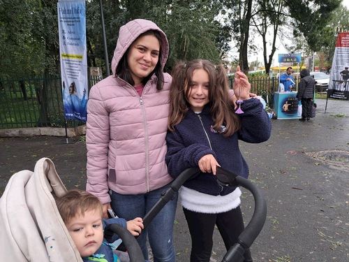 35-летняя Кларисия гуляла по улице со своими двумя детьми, когда остановилась у палатки Фалунь Дафа. Она сказала, что в жизни людям особенно не хватает тех принципов, которым учит Дафа. «Нам всем нужна доброта. Сегодня люди становятся всё более нетерпеливыми, даже с детьми», – поделилась она. Её дочь София с радостью взяла бумажный цветок лотоса и внимательно выслушала рассказ практикующей о принципах «Истина, Доброта, Терпение».