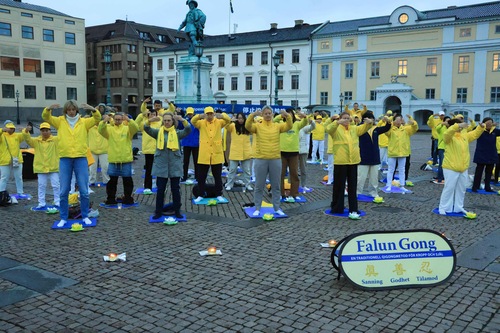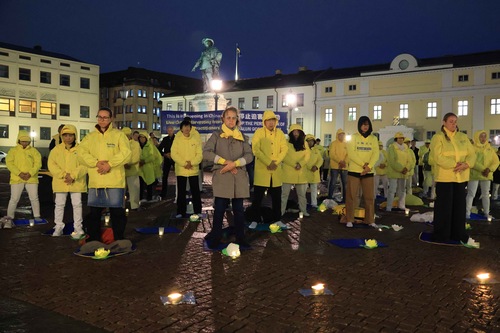 (Minghui.org) Практикующие Фалуньгун 19 сентября 2025 года провели акцию памяти с зажжёнными свечами и выполнили упражнения на площади Густава Адольфа в Гётеборге (Швеция).