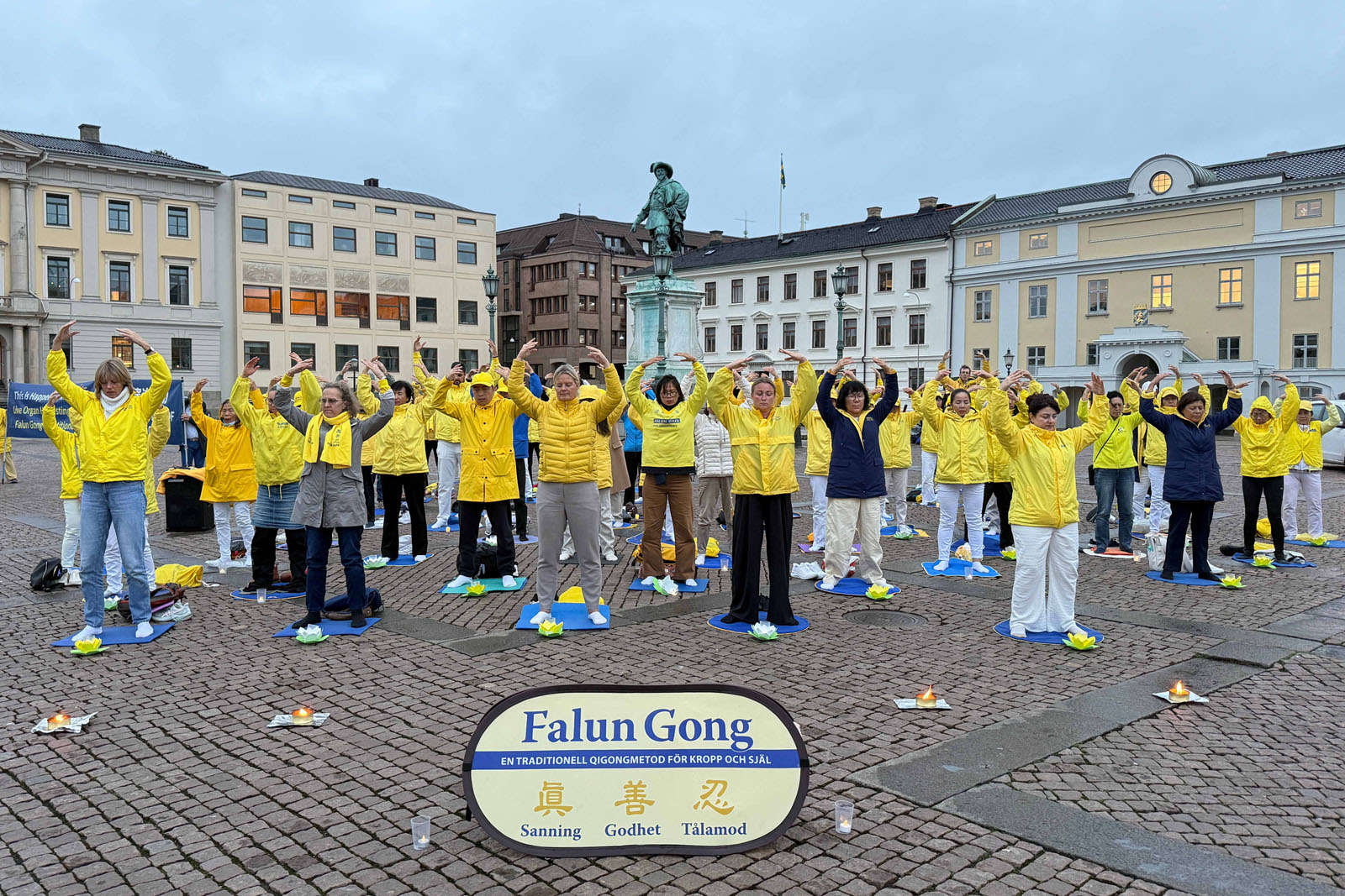 Последователи Фалунь Дафа провели акцию с зажжёнными свечами на площади Густава Адольфа в Гётеборге и продемонстрировали упражнения 19 сентября 2025 года