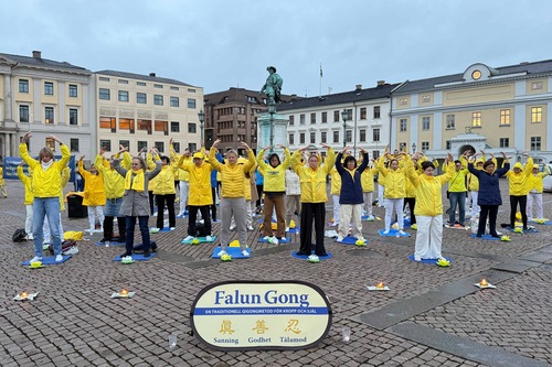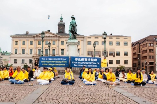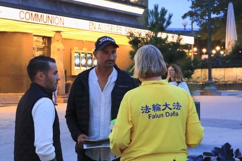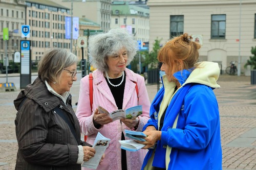 Посетители концертного зала, расположенного на западной стороне площади Гётаплатсен, захотели узнать больше о Фалунь Дафа
