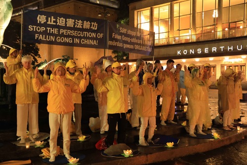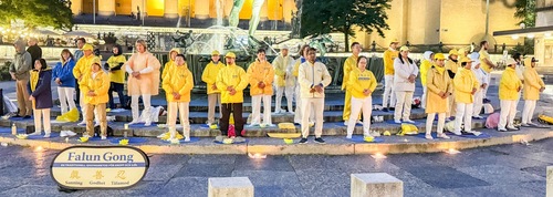 Под моросящим дождём, при свете мерцающих свечей, практикующие Фалуньгун почтили память узников совести, погибших от пыток, а также ставших жертвами насильственного извлечения органов, санкционированного компартией Китая. Многие прохожие брали листовки и беседовали с практикующими.