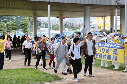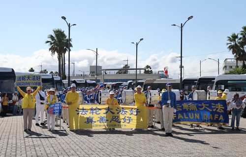 Перед тем как началась посадка в туристические автобусы, практикующие смогли рассказать правду о Фалунь Даф многим туристам. Люди внимательно слушали, а выступление духового оркестра Тянь Го усиливало их интерес. Некоторые сотрудники службы безопасности и портовые служащие сначала отнеслись к мероприятию настороженно, но, услышав о том, что в Китае людей жестоко преследуют за их веру, выразили готовность поддержать практикующих.