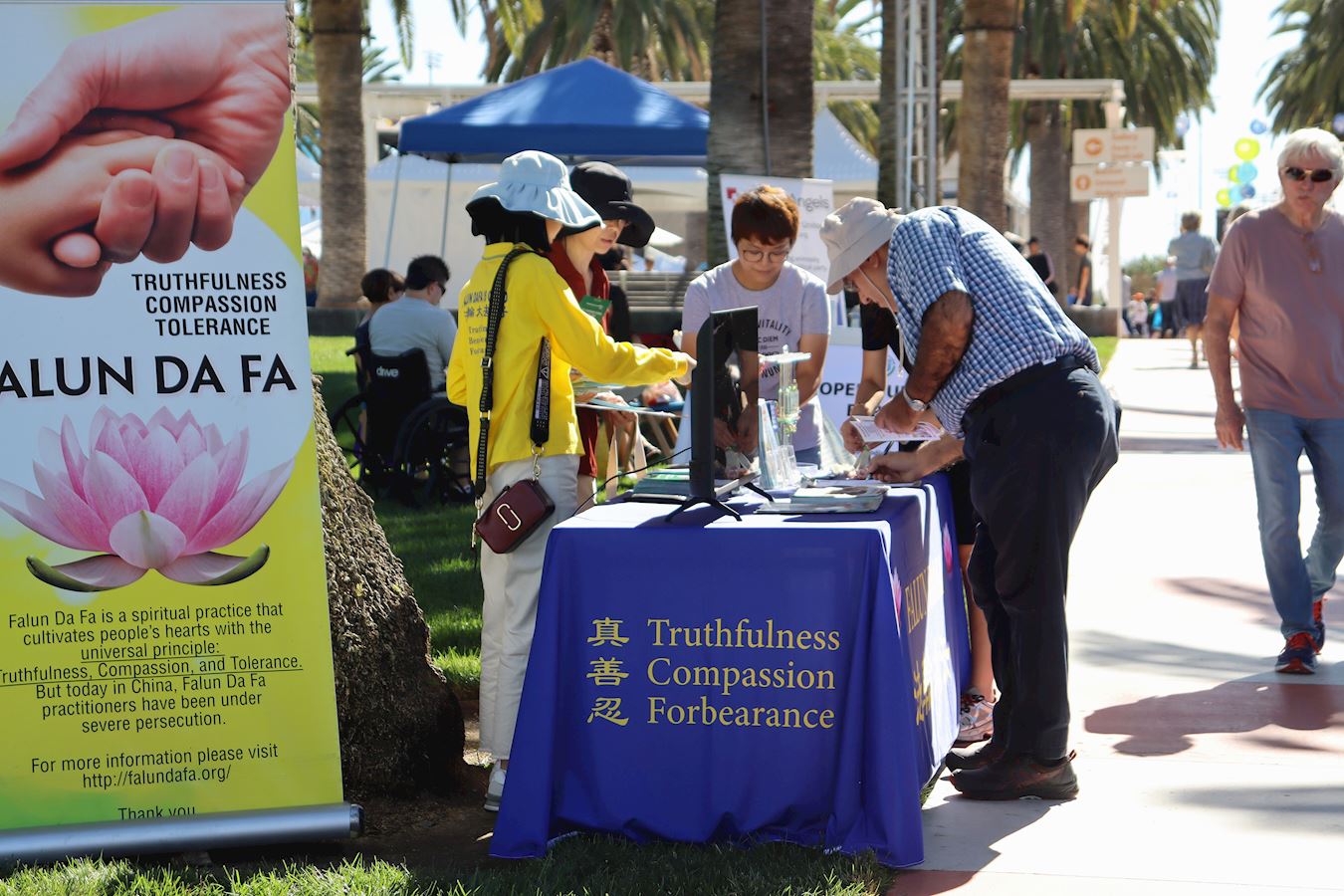 (Minghui.org) 11 октября 2025 года практикующие Фалунь Дафа приняли участие в 24-м фестивале «Глобальная деревня», проходившем в Грейт-Парке в городе Ирвайне (штат Калифорния, США).