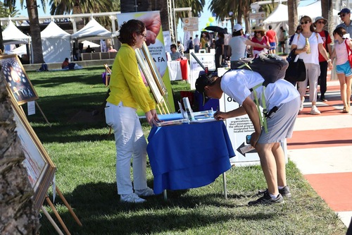 Как только одна из практикующих упомянула местному жителю об инциденте с «горячим микрофоном», мужчина сразу же сказал, что понял, о чём она говорит, и назвал это ужасным. Он подписал петицию, призывающую к прекращению насильственного извлечения органов у живых последователей Фалуньгун.