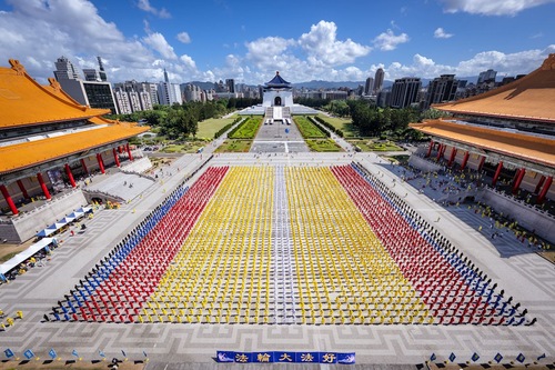 18 октября 2025 года практикующие Фалуньгун провели ежегодное мероприятие по формированию иероглифов на площади Свободы в Тайбэе