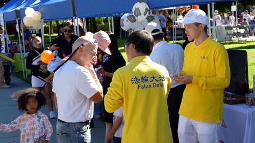 После парада практикующие Фалунь Дафа собрались в парке Роуленд-Хайтс, чтобы выполнить упражнения, и многие люди останавливлись, чтобы понаблюдать за происходящим. Практикующие также установили информационный стенд с материалами о Фалунь Дафа и маленькими цветами лотоса, символизирующими чистоту и духовное пробуждение. Они рассказывали прохожим о принципах этой духовной практики и о преследовании Фалунь Дафа в Китае, инициированном компартией Китая.