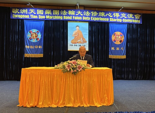 Ведущими Конференции были два члена оркестра. В своём вступительном слове они сказали: «Как участники духового оркестра Тянь Го, мы подтверждаем Фа и спасаем живых существ посредством музыки. В этом процессе мы постоянно совершенствуемся, избавляемся от привязанностей, улучшаем свой характер, сотрудничаем друг с другом и создаём Единое Тело».