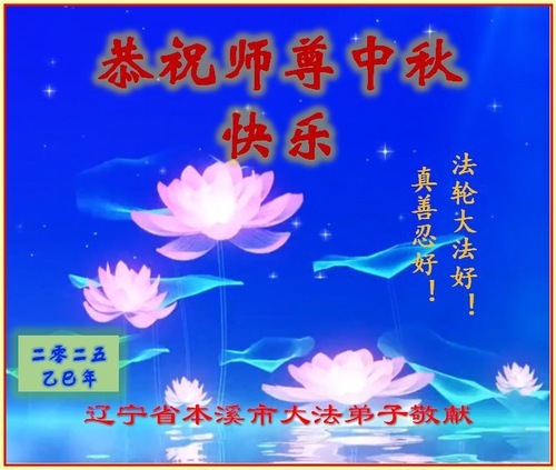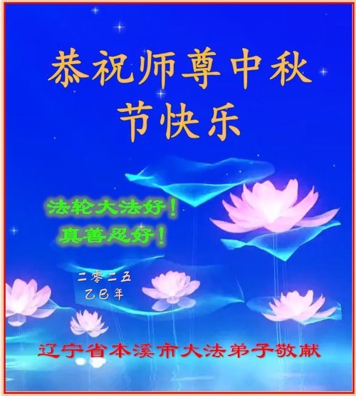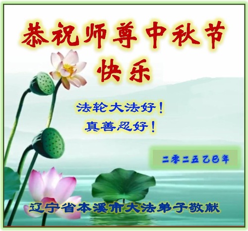 Практикующие Фалунь Дафа из города Бэньси желают уважаемому Учителю Ли Хунчжи счастливого праздника Середины осени (18 поздравлений)