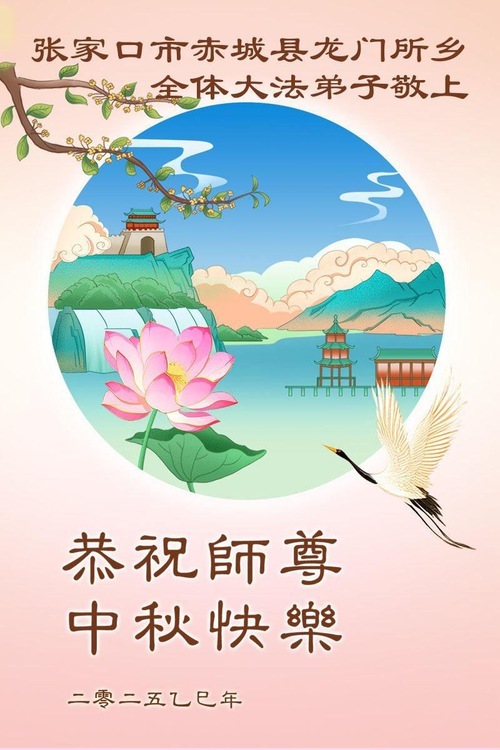 Практикующие Фалунь Дафа из города Чжанцзякоу желают уважаемому Учителю Ли Хунчжи счастливого праздника Середины осени (19 поздравлений)