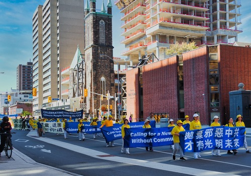 Практикующие Фалунь Дафа проводят шествие в Торонто, чтобы разоблачить преследование последователей Дафа компартией Китая