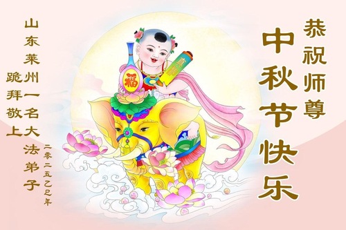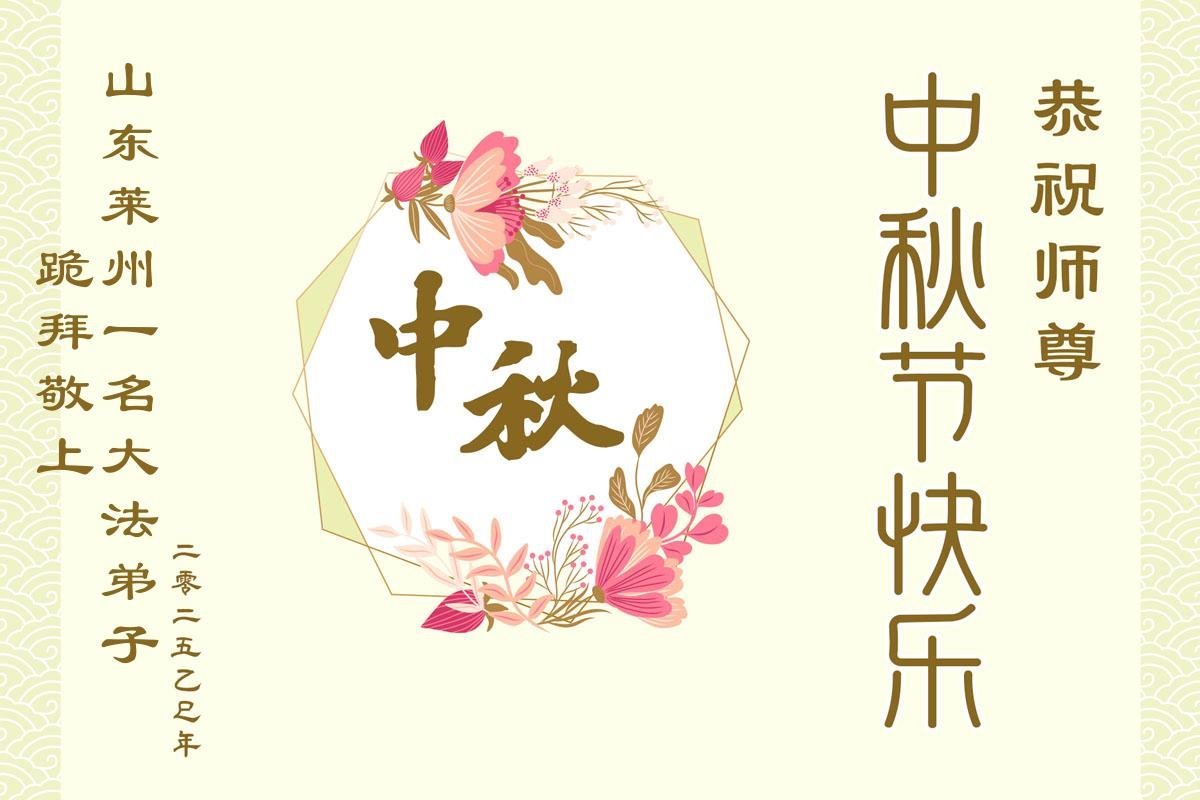 Практикующие Фалунь Дафа из провинции Шаньдун поздравляют уважаемого Учителя Ли Хунчжи с праздником Середины осени (18 поздравлений)