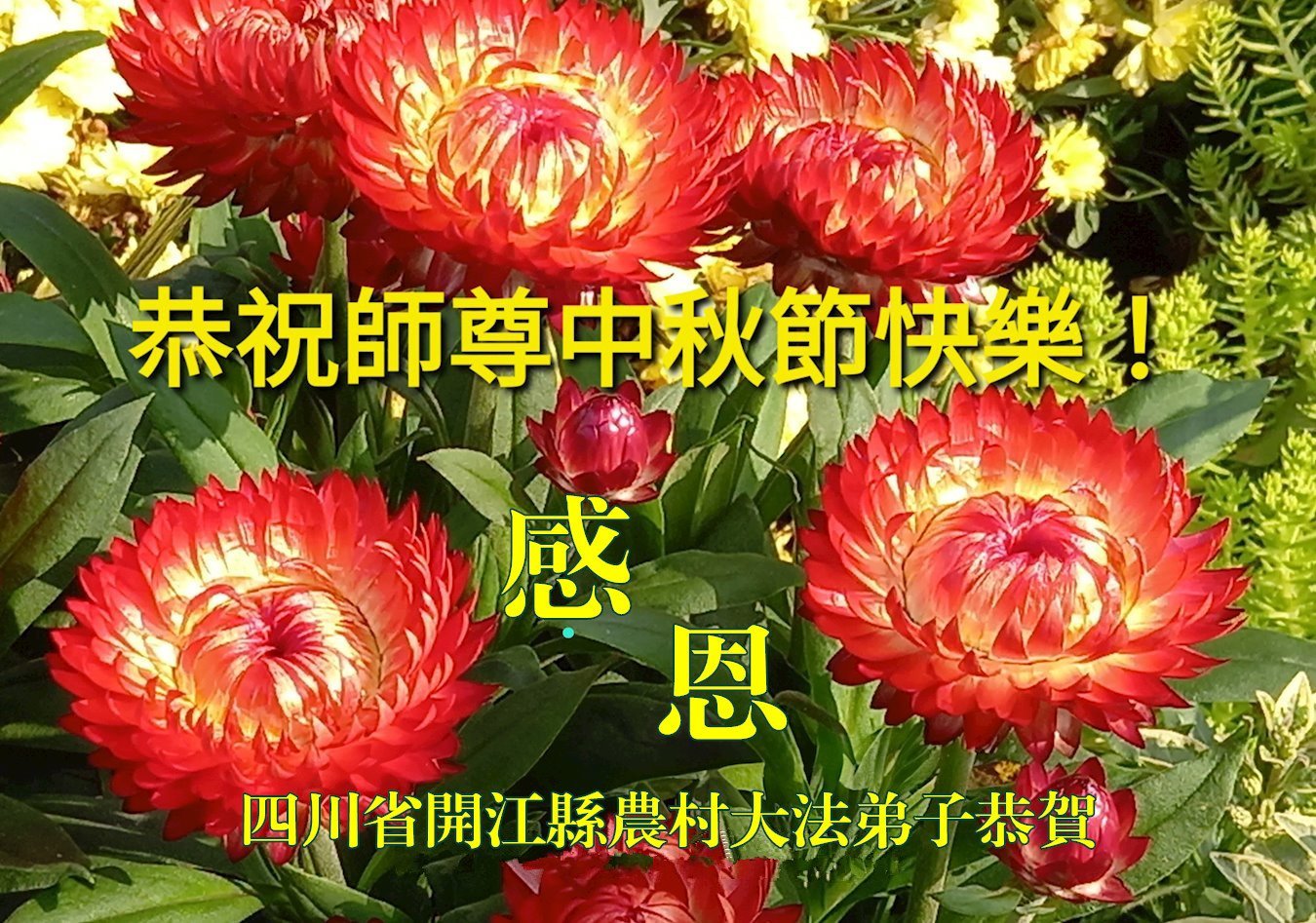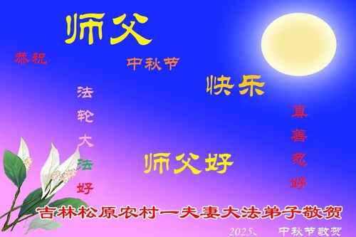 (Minghui.org) С приближением праздника Середины осени, который отмечается 6 октября в 2025 году, практикующие Фалунь Дафа передают свои самые искренние поздравления Учителю Ли Хунчжи и желают основателю Фалунь Дафа счастливого праздника.