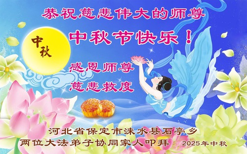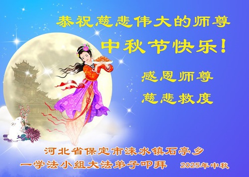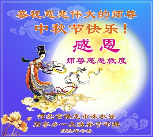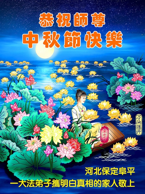 Практикующие Фалунь Дафа из города Баодина желают уважаемому Учителю Ли Хунчжи счастливого праздника Середины осени (19 поздравлений)