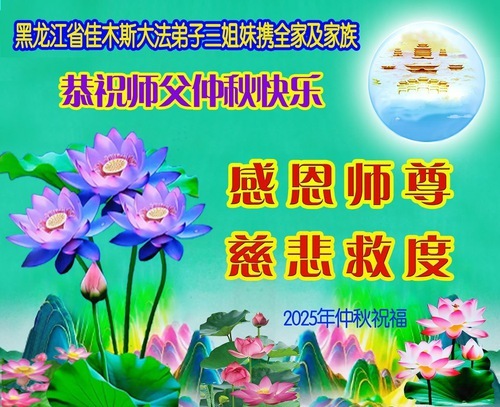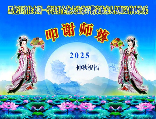 Практикующие Фалунь Дафа из города Цзямусы желают уважаемому Учителю Ли Хунчжи счастливого праздника Середины осени (18 поздравлений)