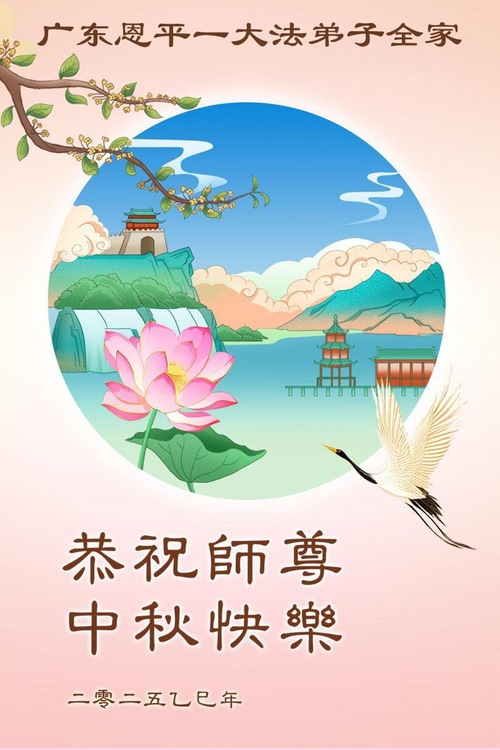 Практикующие Фалунь Дафа из провинции Гуандун желают уважаемому Учителю Ли Хунчжи счастливого праздника Середины осени (19 поздравлений)