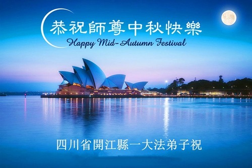 Практикующие Фалунь Дафа из провинции Сычуань желают уважаемому Учителю Ли Хунчжи счастливого праздника Середины осени (18 поздравлений)