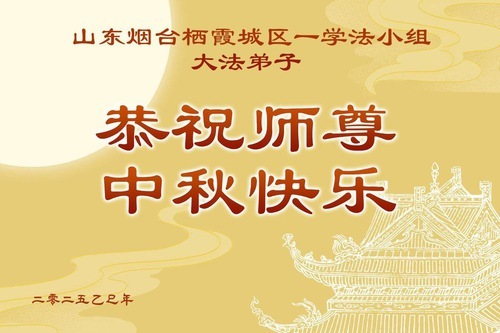 Практикующие Фалунь Дафа из провинции Шаньдун желают уважаемому Учителю Ли Хунчжи счастливого праздника Середины осени (18 поздравлений)