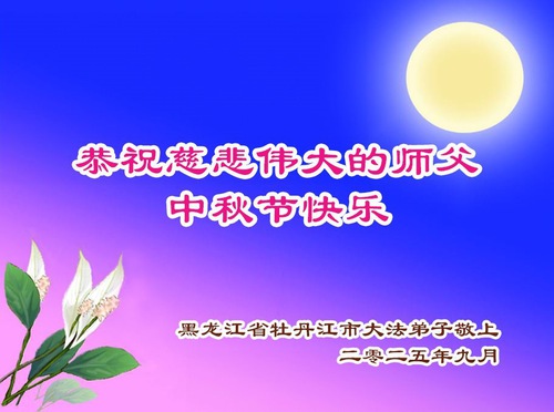 Практикующие Фалунь Дафа из провинции Хэйлунцзян желают уважаемому Учителю Ли Хунчжи счастливого праздника Середины осени (19 поздравлений)