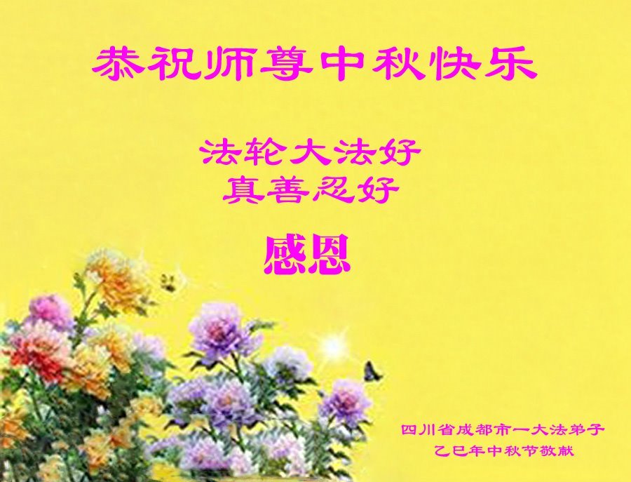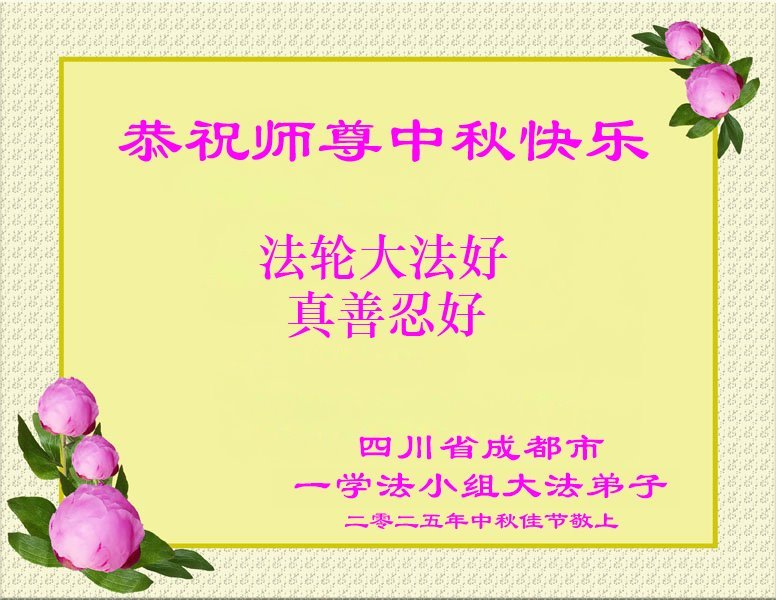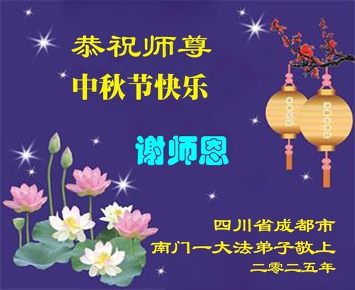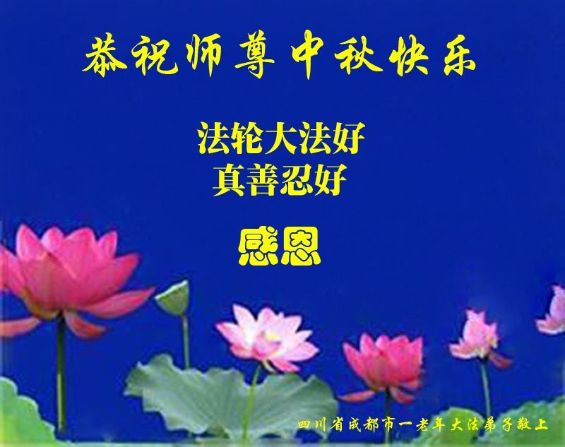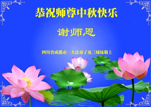 Практикующие Фалунь Дафа из города Чэнду желают уважаемому Учителю Ли Хунчжи счастливого праздника Середины осени (18 поздравлений)