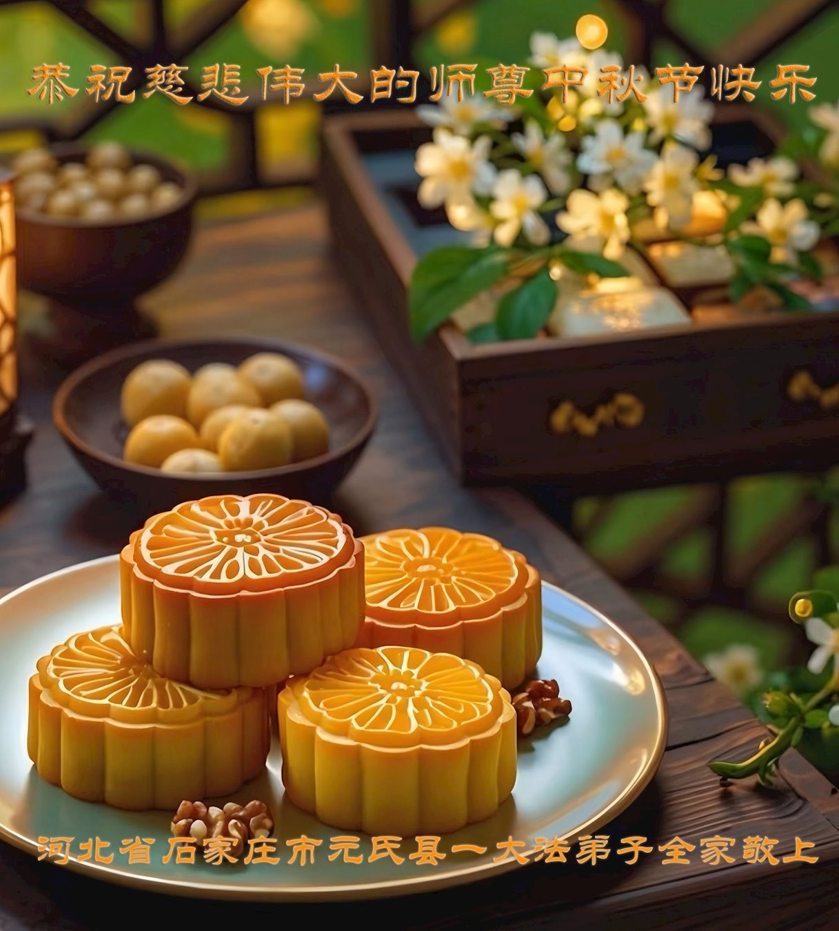 Практикующие Фалунь Дафа из города Шицзячжуана желают уважаемому Учителю счастливого праздника Середины осени!