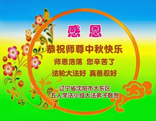 Практикующие Фалунь Дафа из города Шэньяна желают уважаемому Учителю Ли Хунчжи счастливого праздника Середины осени (18 поздравлений)