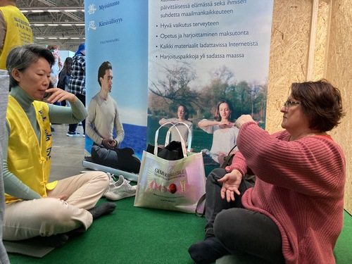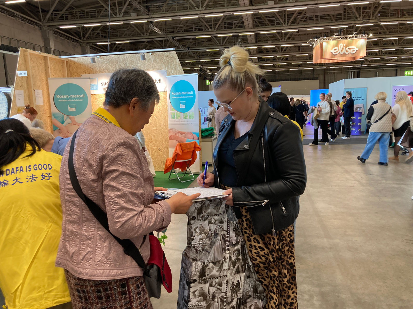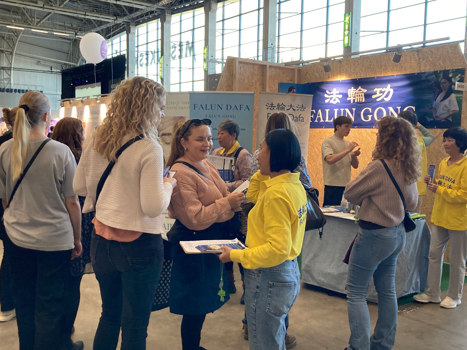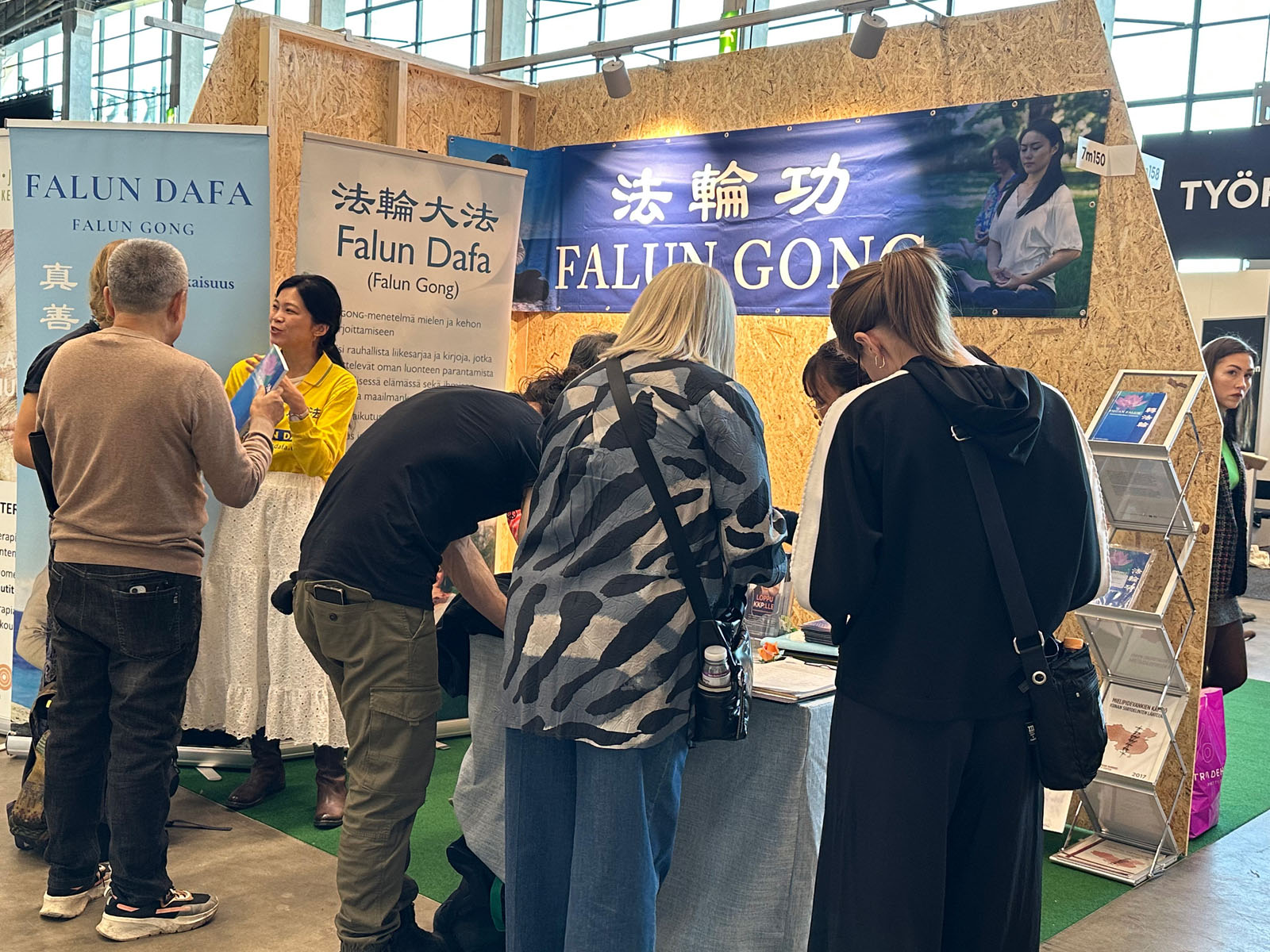 (Minghui.org) Выставка, посвящённая здоровому образу жизни 2025 года под названием«Я люблю себя», проходила в выставочном и конференц-центре Хельсинки в Финляндии с 17 по 19 октября 2025 года. Она продемонстрировала последние тенденции в области красоты, моды и здоровья. Практикующие Фалунь Дафа, которых пригласили принять участие, рассказали людям о преимуществах практики Фалунь Дафа и о том, как компартия Китая (КПК) преследует эту духовную практику. Многие посетители подходили к стенду Дафа, а некоторые изучали упражнения прямо на выставке.
