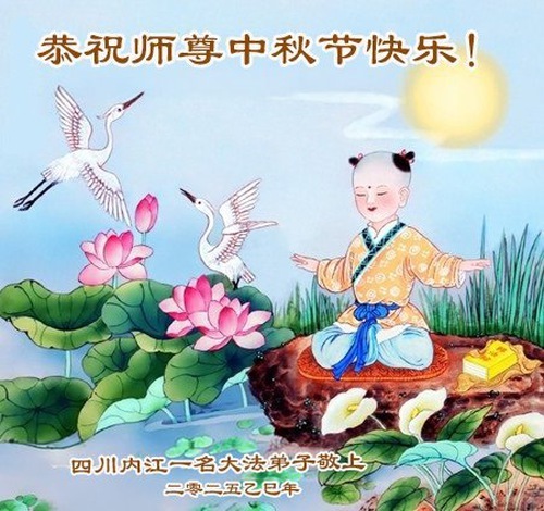 Практикующие Фалунь Дафа из провинции Сычуань желают уважаемому Учителю Ли Хунчжи счастливого праздника Середины осени (19 поздравлений)