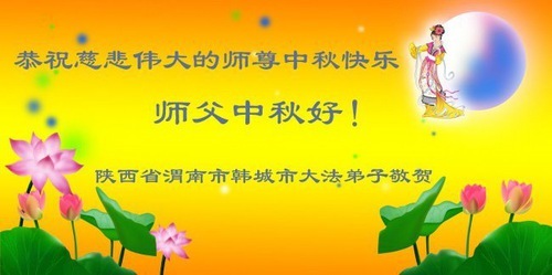 Практикующие Фалунь Дафа из провинции Шэньси желают уважаемому Учителю Ли Хунчжи счастливого праздника Середины осени (18 поздравлений)