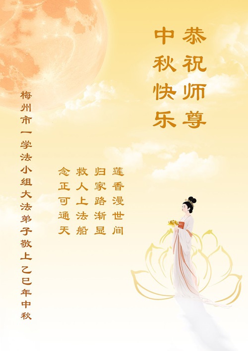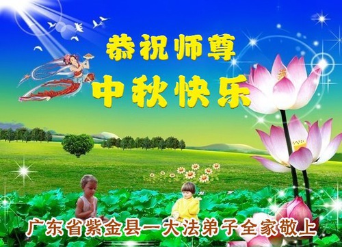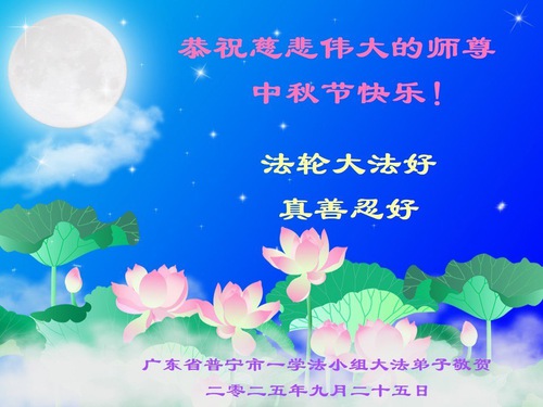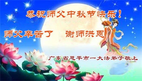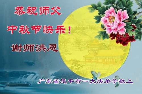 Практикующие Фалунь Дафа из провинции Гуандун желают уважаемому Учителю Ли Хунчжи счастливого праздника Середины осени (18 поздравлений)
