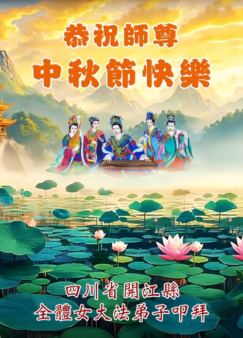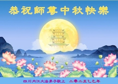 Практикующие Фалунь Дафа из провинции Сычуань желают уважаемому Учителю Ли Хунчжи счастливого праздника Середины осени (21 поздравлениe)