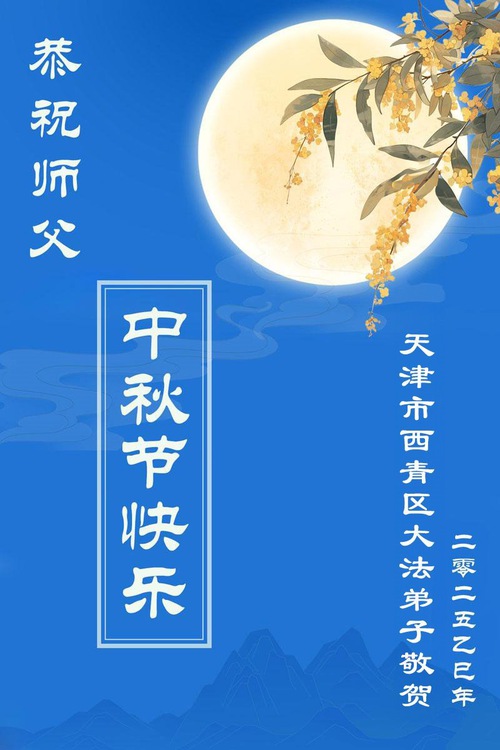 Практикующие Фалунь Дафа из города Тяньцзиня желают уважаемому Учителю Ли Хунчжи счастливого праздника Середины осени (20 поздравлений)