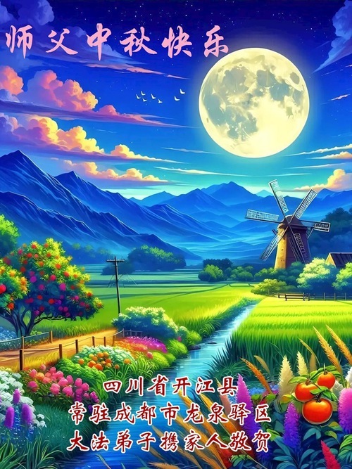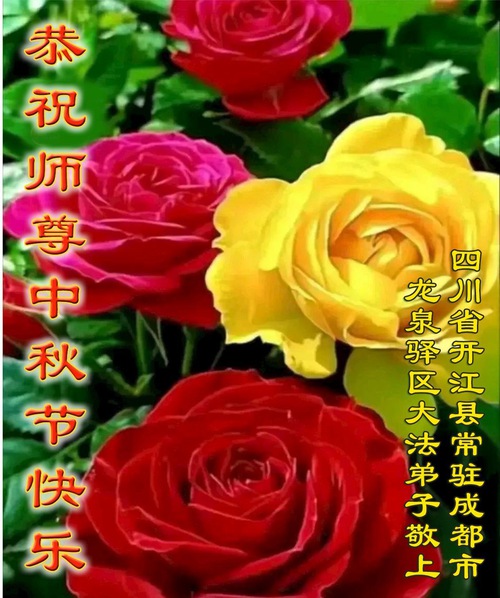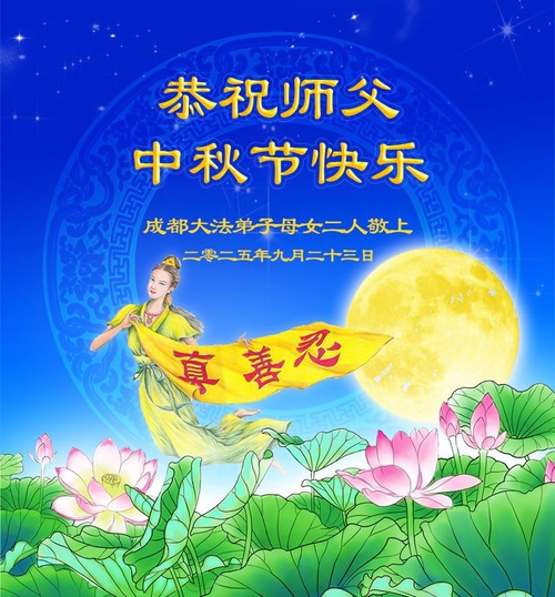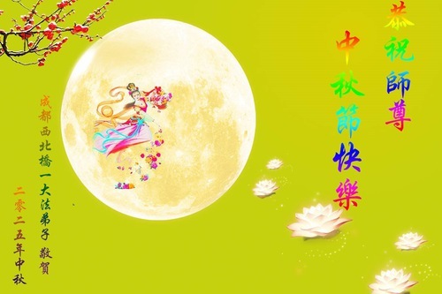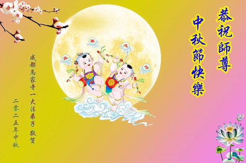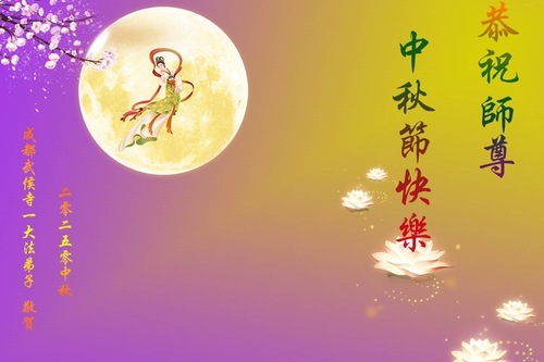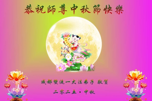 Практикующие Фалунь Дафа из города Чэнду желают уважаемому Учителю Ли Хунчжи счастливого праздника Середины осени (19 поздравлений)