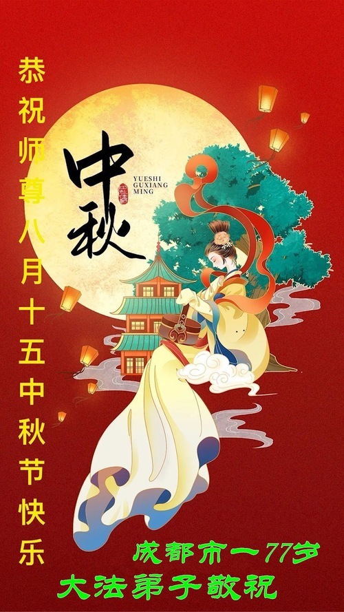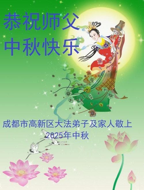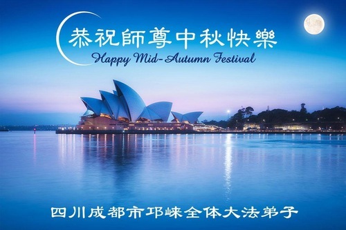 Практикующие Фалунь Дафа из города Чэнду желают уважаемому Учителю Ли Хунчжи счастливого праздника Середины осени (18 поздравлений)