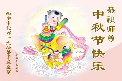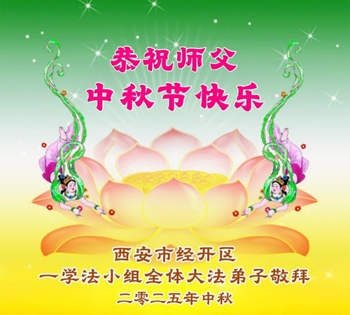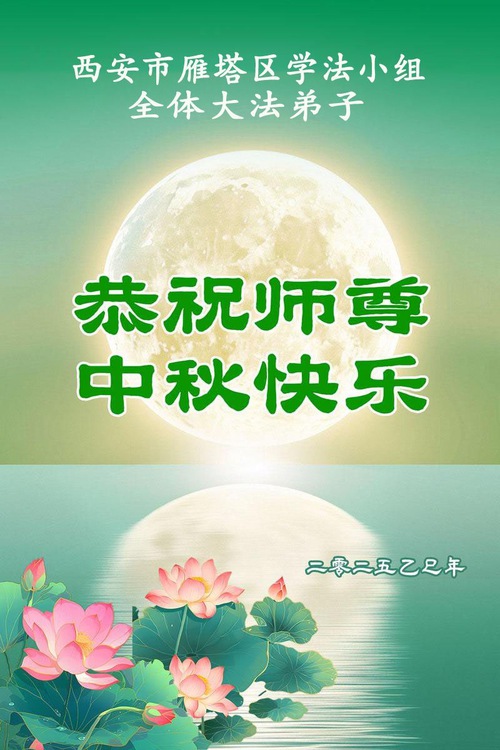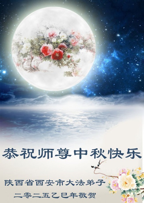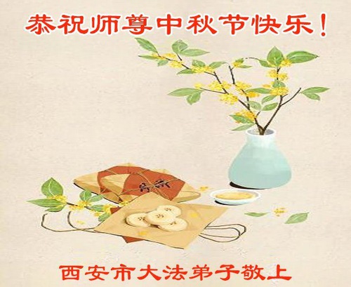 Практикующие Фалунь Дафа из города Сиань желают уважаемому Учителю Ли Хунчжи счастливого праздника Середины осени (19 поздравлений)