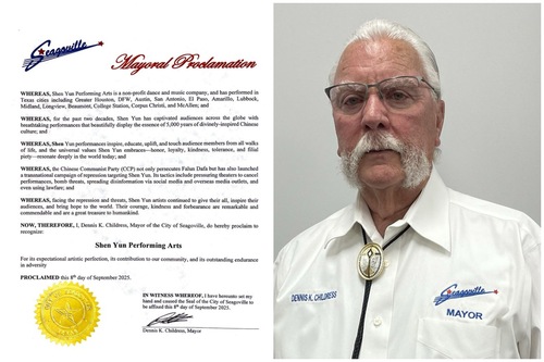 Деннис К. Чайлдресс, мэр города Сиговилл, выпустил прокламацию 8 сентября 2025 года в поддержку Shen Yun