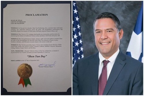 Мэр города Палмвью Рикардо Вильярреал объявил 15 сентября 2025 года Днём Shen Yun